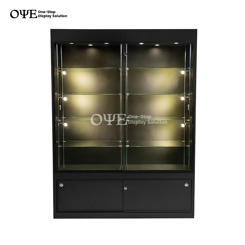 Ko tenei rūnanga karaehe pakitara he mea hanga mai i te karaehe whakamaarama me te raima pango, he pouaka kei te turanga he tino pai mo te rokiroki i o taonga.Ko te mutunga pango e whakakii ana ehara i te mea ko nga mea kei roto i te pouaka whakaatu engari ko ona taiao.Ka hangaia ia rūnanga mo te whakamahi roa ahakoa i roto i nga toa he nui te hokohoko.Ko nga tatau karaehe paheke ka noho haumaru o hokohoko mai i nga ringaringa.Ko nga rama e mau ana ki runga me nga taha o te pouaka whakaatu ka whakatika kia pai ake te whakaatu i nga hua hei whakaatu ki te hunga e haere ana me nga kaihoko pea.Whakanohoia te rūnanga taonga ki nga waahi katoa i roto i to toa me nga waewae ka taea te whakarite kia mau tonu te taumata o to karaehe.