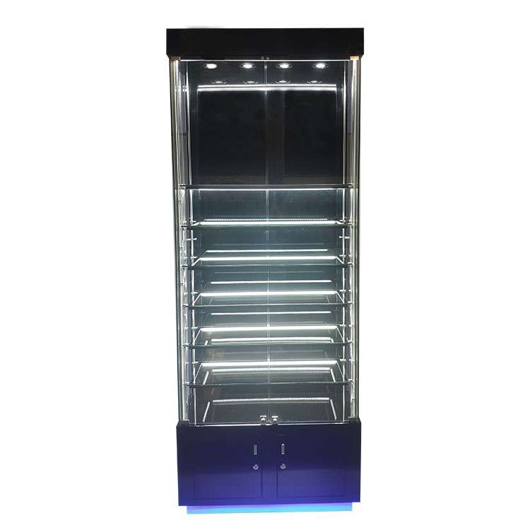 The frameless design is a good way to glass display cabinets your products, and also allows customers to see your products at the door, which can attract customers' attention.The light bar around the top can give you the charming brightness and luster of the goods you want to show, which is the best choice for displaying the goods such as mobile phones, watches, spare parts and jewelry.