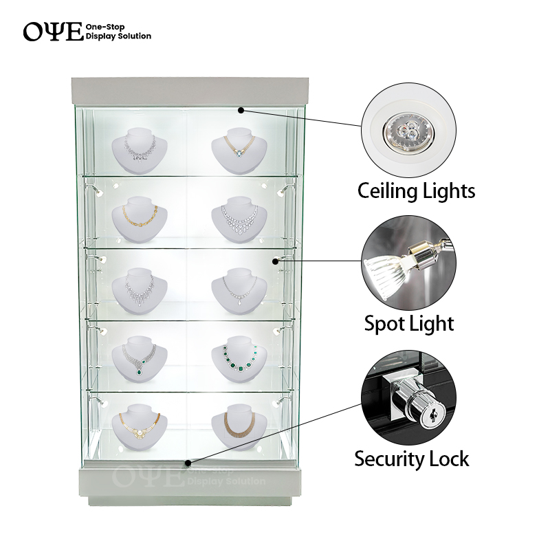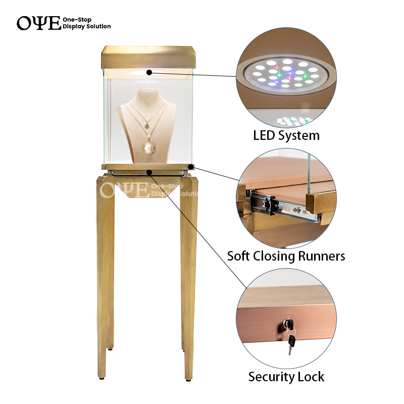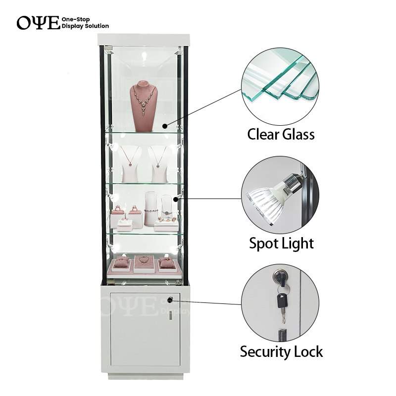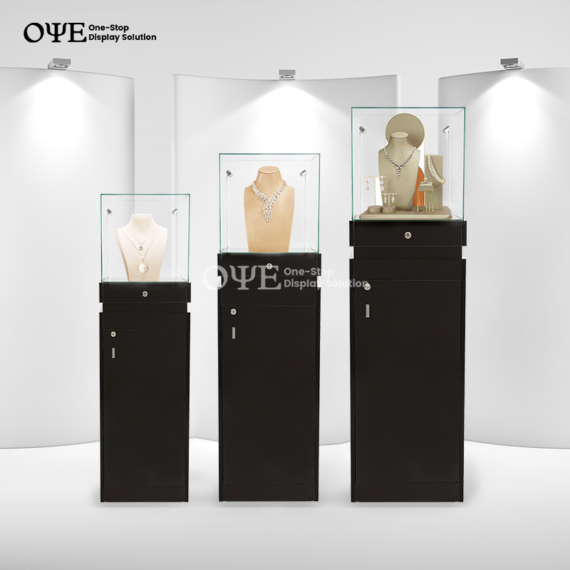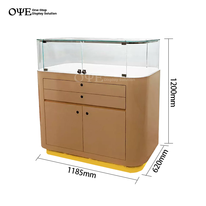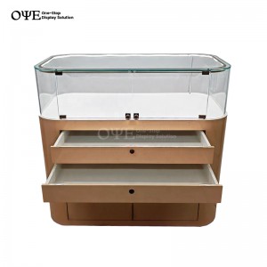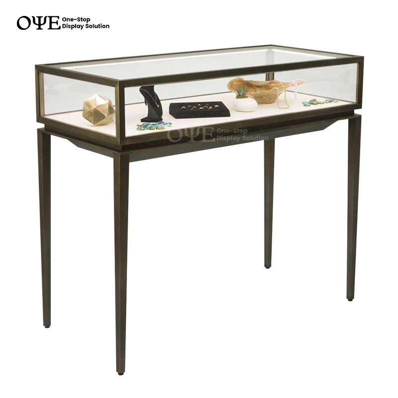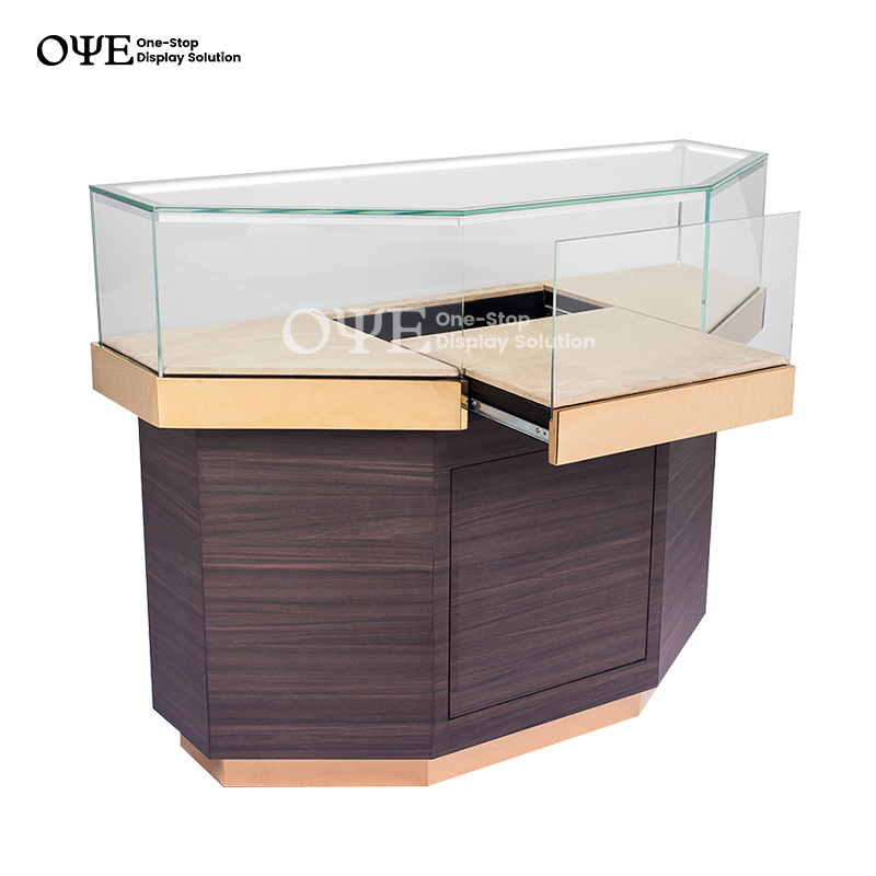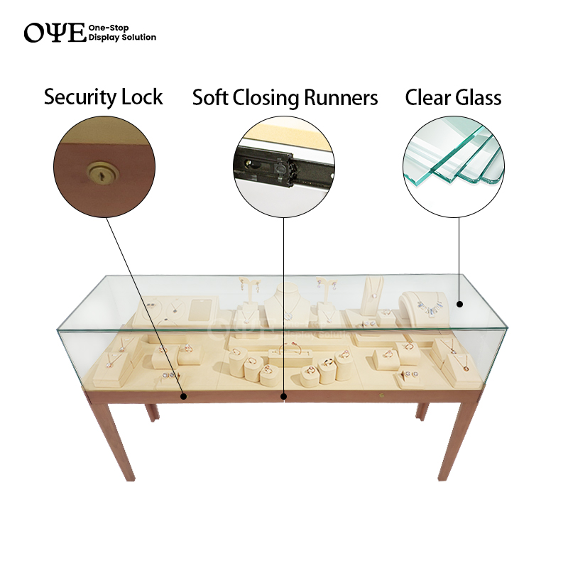 Oye showcases is a leading manufacturer of jewelry cases and jewelry counters—we custom jewelry display cabinets in fabric wood lamination and stainless steel. And offer a full line of modern design island standard cases and wall mount display cabinets and shelving for entire stores within our collections. Our jewelry tables are styling that includes stylish, sleek appearances and traditional classical design to satisfy different display requirements. Whether you are looking for an antique jewelry curio cabinet or fashion jewelry showcase, you will always find the ideal model here.