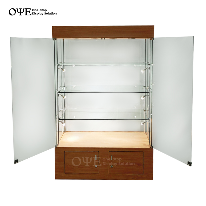 OYE Showcases as the best moke shop, tobacco, or vape store shelves manufacturer, factory, supplier, exporter in China since 2017, ISO9001:2015 listed, We have rich experience in manufacturing glass retail display case with the following advantages and services: