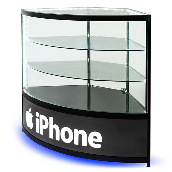 Size of this one mobile phone display showcase can be made base on your requirements. The color of the showcase is black, if you want different colors, it is available to choose. The logo can be customized on the showcase middle part, so before design, please send us the logo file. The showcase can display many types mobile phones for customers to see the series. The LED lights would shine the cellphones and let them looks very attractive. The bottom can be designed the cabinets for storing something you want. It is made into multifunctional.