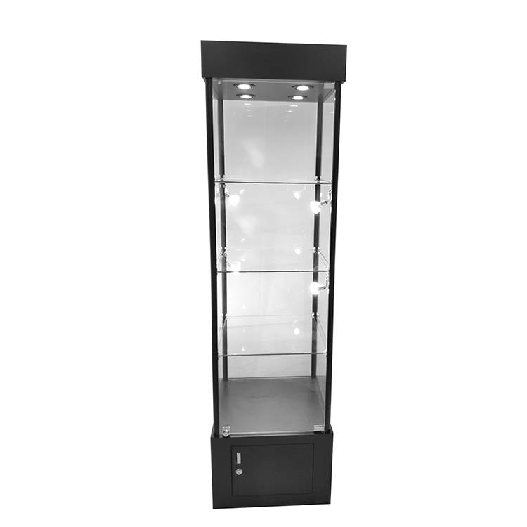 Ang buong baso naminmga ideya sa retail display casena may mga LED na ilaw, ay Tamang-tama para sa mga tindahan sa matataas na kalye at mga negosyong nagnanais na magpakita ng mga mahahalagang bagay tulad ng mga regalo, alahas, electronics at mga paputok sa punto ng pagbebenta. Ginawa gamit ang itim na anodised at matigas na salamin sa kaligtasan, ang display counter na ito ay nagbibigay ng secure na display area na may karagdagang lugar ng imbakan na nakakandado at ito ang perpektong solusyon para sa mga display sa harap ng bahay at mga till point para sa lahat ng retail setting at high street store.